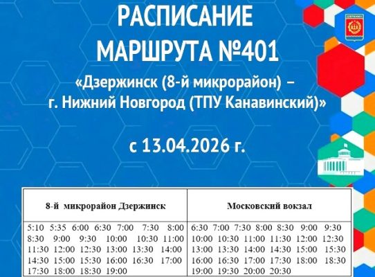 С 13 апреля предприятие, обслуживающее маршрут №401 «Дзержинск — Нижний Новгород», приняло решение об увеличении транспортного состава. Об этом сообщили в администрации Дзержинска.