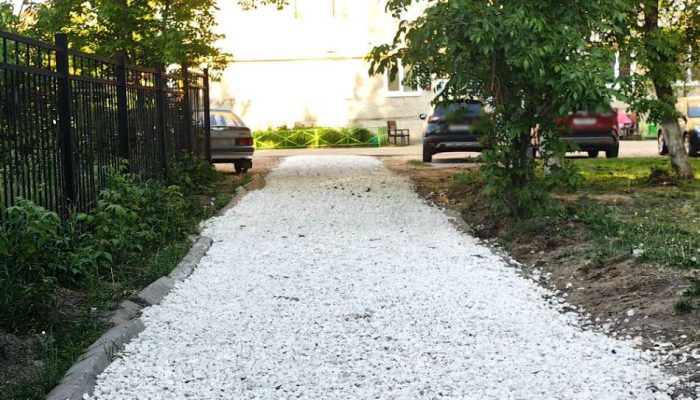 Работы включали демонтаж старого покрытия, отсыпку щебнем, установку бордюров и асфальтирование. Дополнительно были обустроены новые пешеходные переходы, нанесена дорожная разметка, установлены искусственные неровности и дорожные знаки.