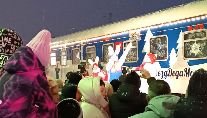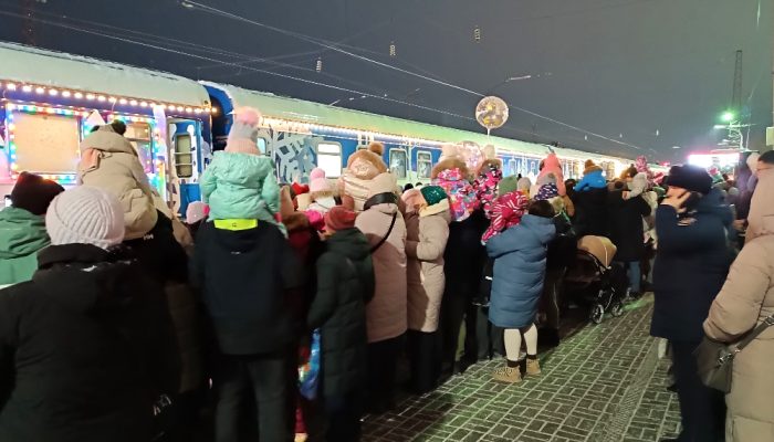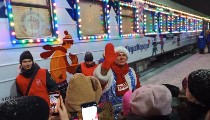 В Дзержинск сегодня приехал долгожданный поезд Деда Мороза. Он стоял на платформе несколько часов, а потом, дав громкий прощальный гудок, умчался вдаль – на следующую станцию. Чем он порадовал местную детвору?