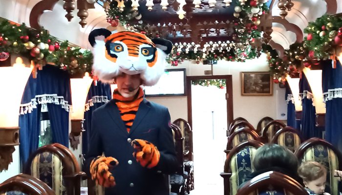 Самые счастливые везунчики попали внутрь поезда – прямехонько в вагон Деда Мороза и Снегурочки, им помогали и другие сказочные герои, например, Тигр.