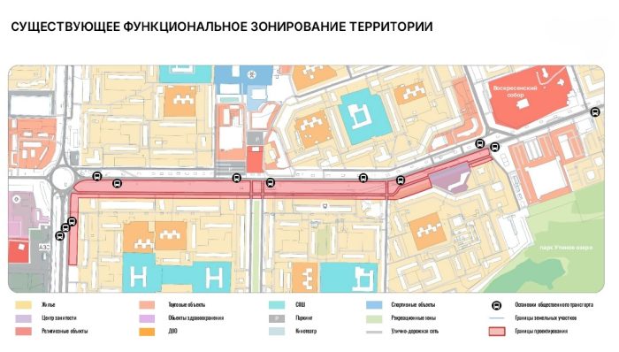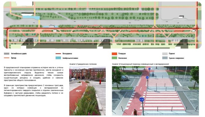 В этот проект включена территория между указанными домами и дорогой на пр. Циолковского. Также обновления захватят площадку перед центром занятости и проход в сторону Утиного озера.