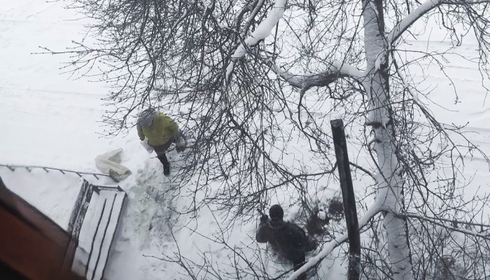 Дворники у подъездов работают по-разному. Но в свете «добавки» снега, всем им сейчас приходится трудиться в усиленном режиме.