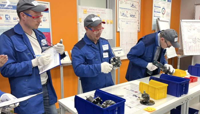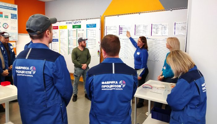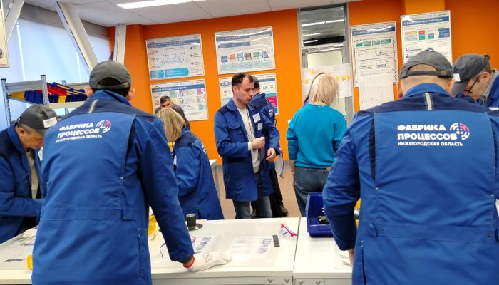 Для того, чтобы пройти обучение по программе производительности труда, была создана производственная площадка «Фабрика Процессов». Она помогла освоить методы бережливого производства и научиться применять их на практике: участники «фабрики» собрались в команду и взяли на себя роли – директора, начальника цеха, логиста, мастера и т.д.