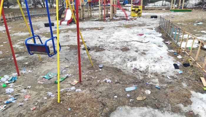 Вообще после зимы по многим адресам в нашем городе оттаяли настоящие помойки, в т.ч. на детских площадках.