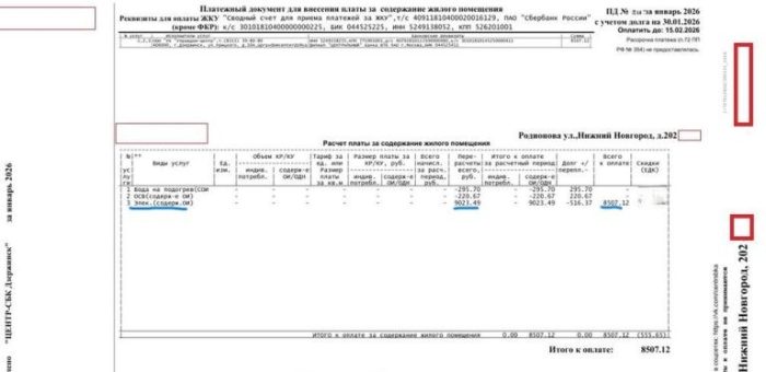 Однако, уже через месяц, когда на ул. Родионова, 202 получили квитанции за январь 2026 г., «сотрудничество» с бывшей УК очень горько аукнулось жильцам. Им пришли квитанции с перерасчетом платы за СОИ по итогам минувшего года по показаниям счетчиков. Собственников квартир уведомили, что они должны заплатить «Управдому» за общедомовой свет в среднем по 9-10 тыс. руб. с каждого лицевого счета. Никаких распечаток с показаниями счетчиков, суммарным расходом электричества и т.д., разумеется, приложено к квитанциям не было. Просто – платите и все.