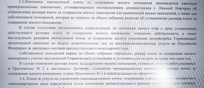 По поводу роста тарифа тоже все стандартно, как в Дзержинске – в договоре ДТК/Управдома говорится об ежегодном повышении платы на содержание жилья по постановлению администрации Нижнего Новгорода. Если такового не будет, то автоматически – на индекс роста цен на коммунальные услуги, принятый по стране за минувшие 12 месяцев.