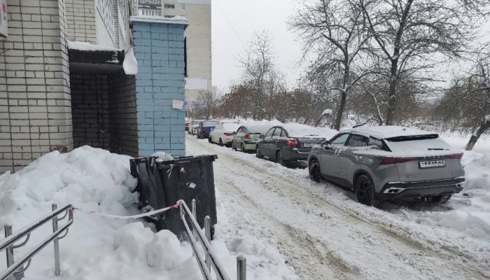 9-этажный 8-подъездный дом №73 по пр. Циолковского в Дзержинске выделяется среди соседних. Если у тех подъезды выходят на внутреннюю сторону, то в этом МКД – на проспект. Весь первый этаж жилого здания исторически занимает государственное медучреждение – стоматологическая поликлиника. Люди, которые приезжают сюда на прием, паркуются, где попало, а самим жителям места для стоянки практически не остается. Зимой и весной, когда снег занимает все уголки, транспортный коллапс жильцы 73-го дома наблюдают ежедневно. Доходит до того, что к дому не может проехать скорая и мусоровозы.
