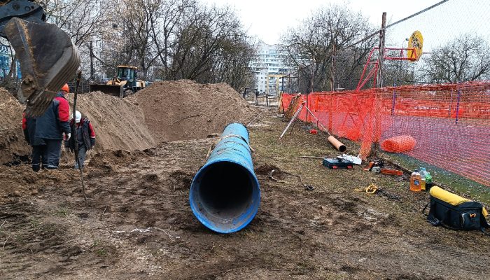 Сейчас работы ведутся на территории школы №20 (ул. Попова, 26А). Здесь участок длиной 294 метров перекладывают открытым способом.