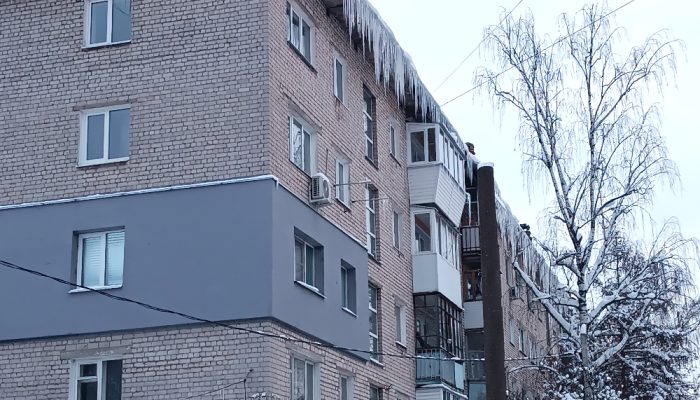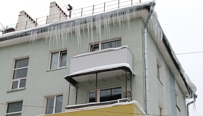 На ул. Грибоедова цепочки сосулек опоясывают верхушки МКД по всему периметру, где-то льдом зарастают целые балконы, и он постепенно спускается на “нижние” этажи.