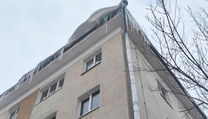 В Дзержинске дома зарастают снежным покровом, свисающим с крыши, и сосульками разной длины и конфигурации, находящимися там же. В самом лучшем случае наледь с МКД сбивают внутри дворов или только над подъездами, но и на улицах, причем центральных, они представляют большую опасность для прохожих.