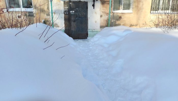 На ул. Ситнова помимо гор снега не чищены от него ни внутридворовые тротуары, ни входы в подъезды. Заходить и выходить приходится по протоптанным жильцами тропам.