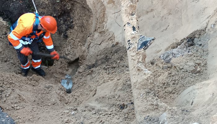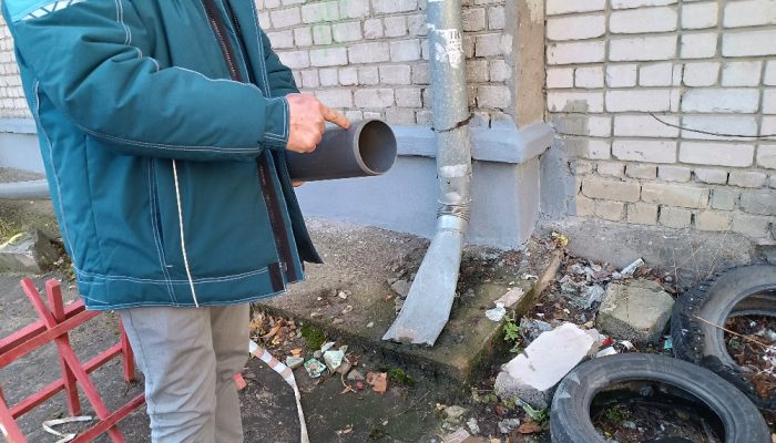 В 4-м подъезде дома в замене нуждался канализационный выпуск. Чтобы его поменять, жилищники и коммунальщики должны были выполнить совместную работу и соединить новые участки трубы на границе здания.