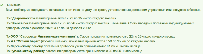 В Дзержинске сроки передачи показаний иные. Они пока остаются неизменными.