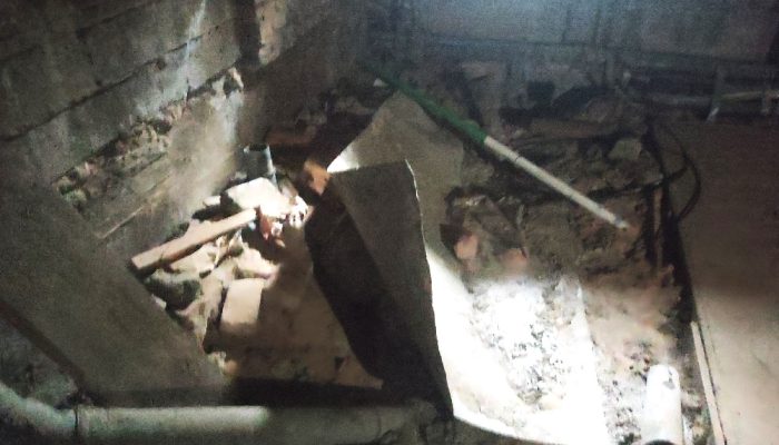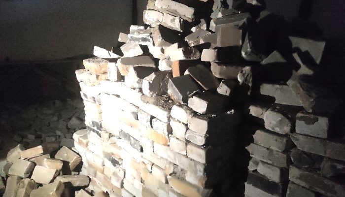 Сначала в одной половине подвала сломали все кладовые помещения. Часть кирпича вывезли, а другая часть и сейчас лежит здесь – можно построить целый дом.