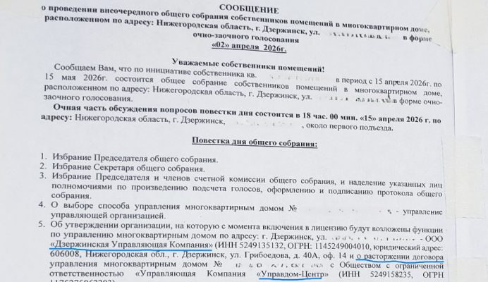 В Дзержинске «Управдом» присоединяется к ДУК. Будут ли собрания?