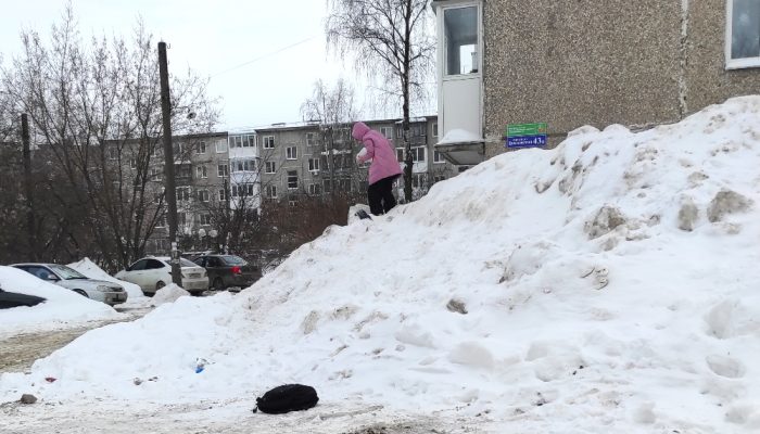 У дзержинской детворы есть любимая зимняя забава – залезать на высоченные горы снега во дворах. Те, которые вы видите на фото, наши читатели прислали из самого центра города – с середины пр. Циолковского, где вывозом снега заправляет УК “Управдом-Центр”.