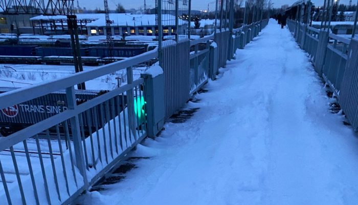 Причем плачевное состояние с очисткой от снега сложилось не только на платформе, но и на мосту для пешеходов. Здесь местами присматривается тропа, а на отдельных участках нет даже ее.