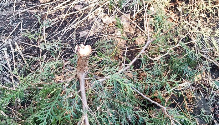 Искореженные заборы — не единственный ущерб, нанесенный собственникам. Складируя весь зимний снег в палисадники, те же УК виноваты в гибели декоративных деревьев и кустарников, которые купили жители, порой совсем недешево, и растили, чтобы любоваться ими из окон.