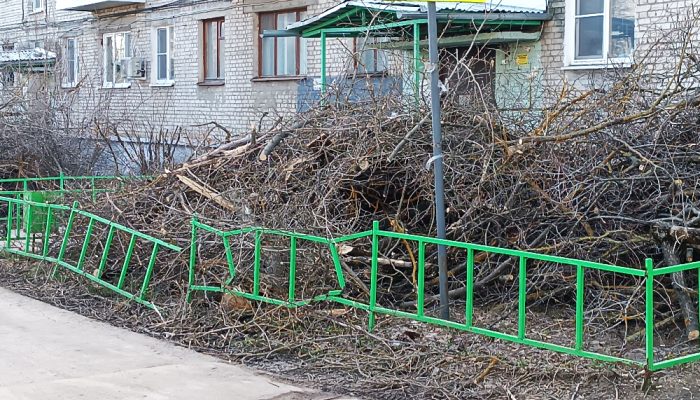 Весна «заботами» многих управляющих компаний в Дзержинске всегда одинакова: жилищники начинают пилить деревья (почему-то строго до уровня 2-го этажа), бросать тут же ветки на неопределенный срок, а под тающим снегом проявляются сломанные секции штакетника, за которые с жителей списали десятки тысяч рублей.