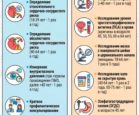Также с 40 до 64 лет один раз в 2 года исследуют кал на скрытую кровь, а с 65 и почему-то только до 75 лет кал берут каждый год. Есть с списке диспансеризации даже ФГДС, но его делают однократно – в 45 лет и все.