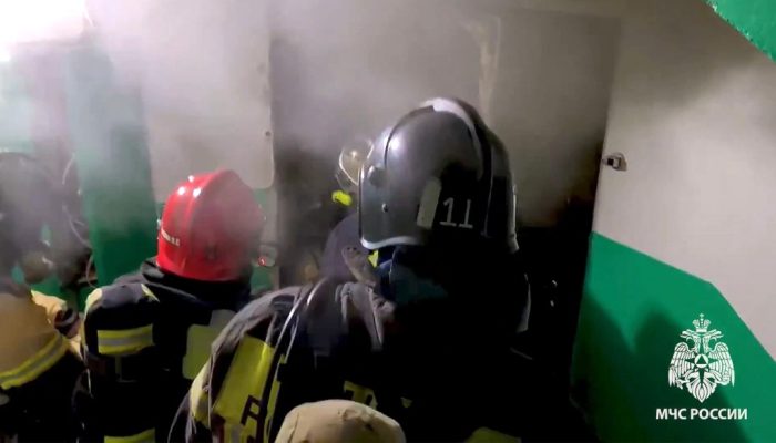 Возгорание возникло в квартире на третьем этаже 9-этажного дома на б. Химиков. Когда на место прибыли первые пожарно-спасательные подразделения, в помещении уже разгорелся пожар, подъезд был сильно задымлен.